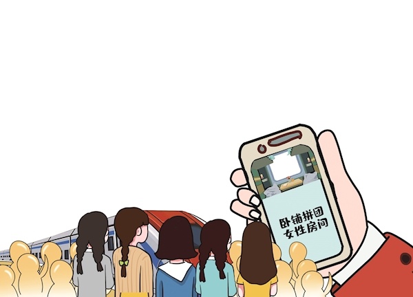 近日,一则“携程推出火车卧铺女性拼团功能”的消息引发关注,该服务收费标准为10元/人,承诺拼团成功出票时,保证同房间均为女性,拼团失败会退还费用。7月26日,12306客服工作人员告诉极目新闻记者,目前列车上暂未设置专门的女性车厢,乘客若有需求,可以向列车员寻求帮助,协调更换车厢位置。