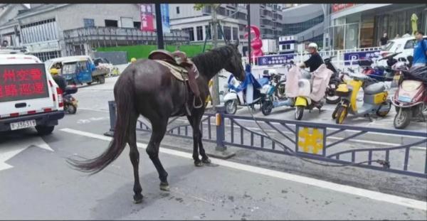 “它一跑,我们就发现了,赶紧追出去。走路绝对跟不上它的速度,路边有共享电单车,我和老板就各扫了一辆。”电话那头,何先生娓娓道来。交流过程中,何先生还有些骄傲,“马虽然跑了,但这也证明它非常聪明。因为来到了陌生的场地,想回家吧,所以就跑了。”