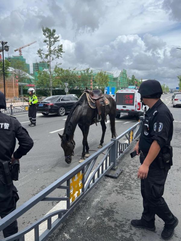 这话听得王敏一愣一愣的,他和同事们迅速展开行动。“不知道这匹马是什么情况,起初,我们没敢采取任何措施。”王敏骑着警用电动摩托车,同事扫了辆共享电单车,一路跟着这匹马;其他同事则开着警车,沿途维护秩序。