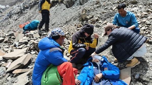 由于姜桑拉姆峰地形复杂、高寒缺氧,经过民警长达三个多小时的徒步寻找,在姜桑拉姆峰5500米的位置成功找到被困登山队队员,三名队员不同程度出现耳鸣、头晕、胸闷等严重高原反应症状,其中一名队员情况危急。民警立即对该名登山队员实施紧急救护措施,并提供氧气瓶、水、食物等物资补充体力。经有效处置,该队员身体机能稍微好转后,大家合力将其搀扶上警车,及时送往浪卡子县人民医院进行救治。