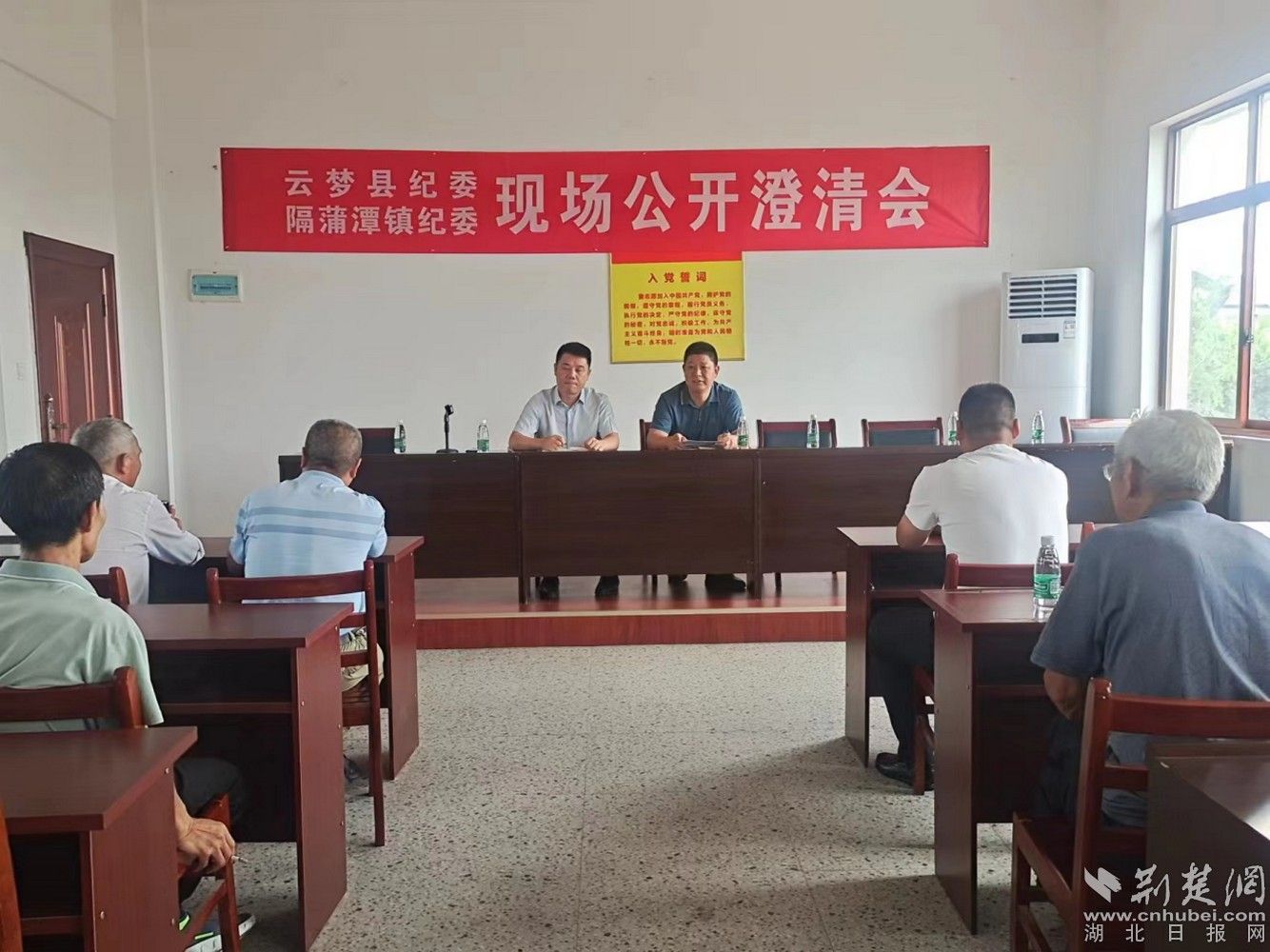 荆楚网(湖北日报网)讯(通讯员王铮、刘毅)“经调查核实,反映村干部陈某某的问题不属实,现为其澄清正名。”7月18日,孝感市云梦县隔蒲潭镇日月湖社区会议室里正在召开公开澄清正名大会,该县纪委监委和镇纪委监委工作人员介绍了群众举报有关问题的调查核实情况,并宣布调查结果。县纪委信访室领导、镇纪委全体干部、日月湖社区“两委“干部、党员及部分群众代表等20余人参加。
