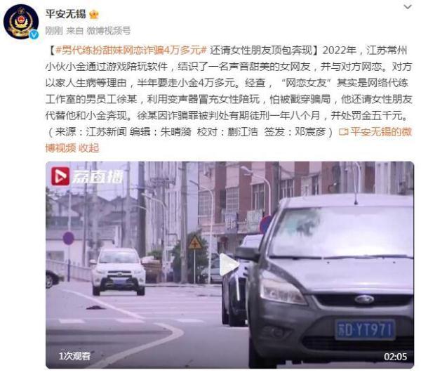 2022年,江苏常州小伙小金通过游戏陪玩软件,结识了一名声音甜美的女网友,并与对方网恋。对方以家人生病等理由,半年要走小金4万多元。经查,“网恋女友”其实是网络代练工作室的男员工徐某,利用变声器冒充女性陪玩,怕被戳穿骗局,他还请女性朋友代替他和小金奔现。徐某因诈骗罪被判处有期徒刑一年八个月,并处罚金五千元。
