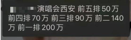 而在二级市场,演唱会的火爆程度有更为直观的体现。演唱会官宣后不久,第一排的门票已被“黄牛”标价至20万元一张,第二、第三排也要15万元一张。另一份聊天记录显示,演唱会前五排单张门票的价格已被炒至50万元,一张第一排门票的价格为200万元。令人望而却步的价格,但还是有人争先恐后的购买。