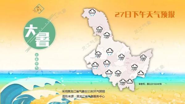黑龙江省气象台2023年7月27日11时发布27日下午至30日白天全省天气预报: