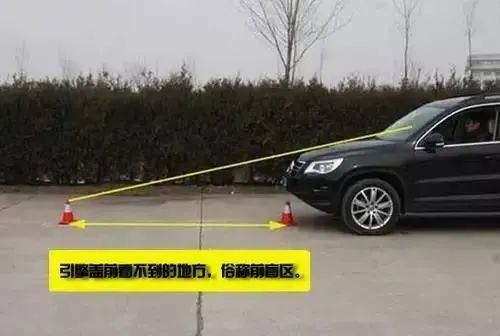 ① 前盲区:引擎盖前看不到的地方,俗称前盲区。影响前盲区大小的因素主要有车身、座椅高度、车头长度、驾驶人身材等。