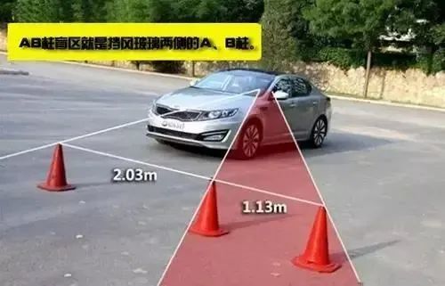 ④ AB柱盲区:在转弯时,如果两侧的A柱较宽,宽的距离就把视线遮挡住,这样产生的盲区就大,如果A柱窄,盲区就小。B柱盲区主要在车辆右侧,在行驶中需要大角度拐到外侧时,B柱会遮挡视线,可能与右侧正常行驶的车辆发生碰撞。