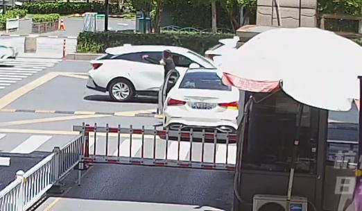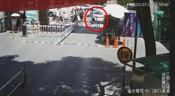 昨天(7月26日)中午,位于萧山区市心南路的潘水南苑小区门口,随着门禁栏杆抬起,一辆白色轿车正缓缓驶出。