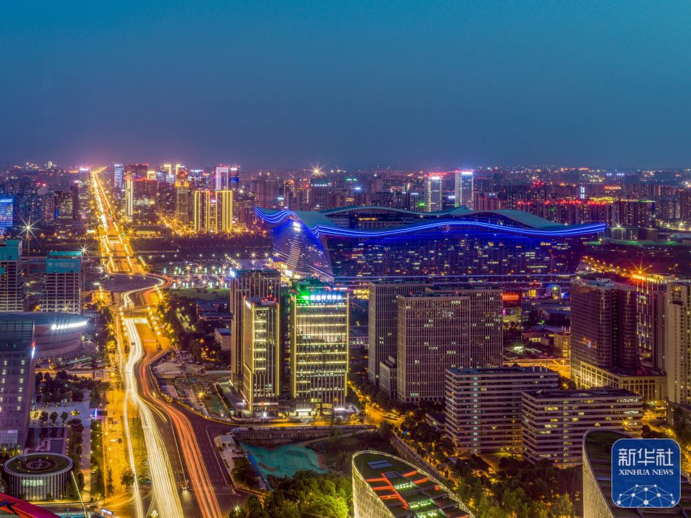 ↑俯瞰夜色下的成都市金融城(7月18日摄)。新华社发(王琦摄)