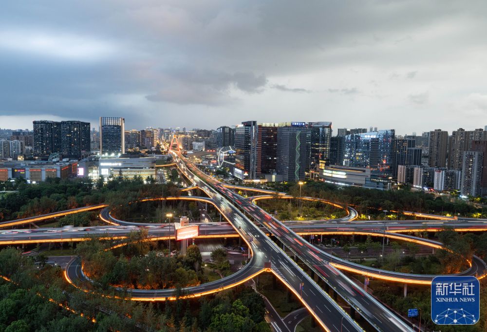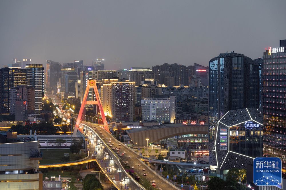 ↑这是7月25日傍晚拍摄的成都国际金融中心附近的街景。新华社记者 晋美多吉 摄