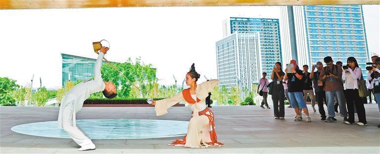 成都大运会主媒体中心宣传文化展示区开展一系列非遗展示和文化活动,包括川剧变脸、功夫茶表演等。