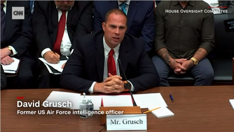 26日的听证会源自格鲁什今年6月的一场“大揭秘”:作为美国国防部国家地理空间情报局的前工作人员,他声称美国政府有可能在20世纪30年代就掌握着涉及“外星生命”的相关信息,而且政府内设有一个高度保密的“不明飞行物复原计划”,在过去数十年来一直致力于“回收及改装坠毁的不明飞行物”。