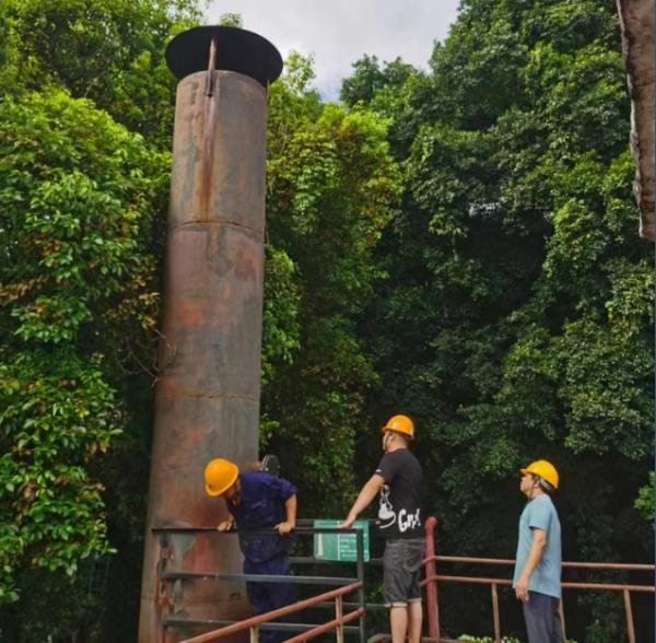 ▲工作人员用紫外光固化修复技术修复管道病害 福州水务集团/供图