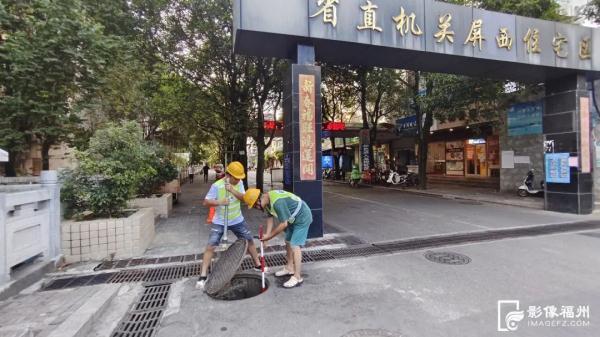 ▲工作人员排查省直机关屏西住宅区前窨井。 市城乡建设局/供图