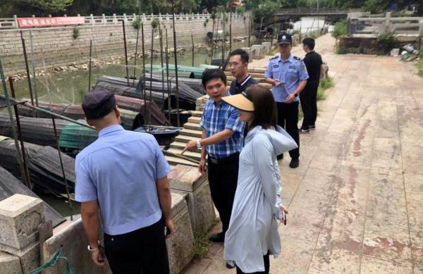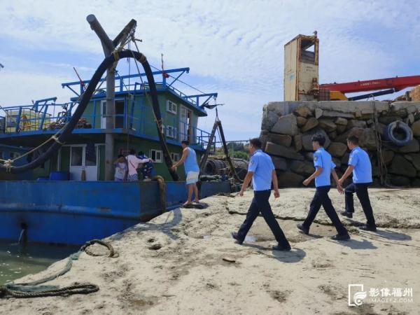 ▲福清市公安局东营海防派出所民警在龙田镇海滨村码头开展巡逻宣传。 通讯员 陈岚/摄