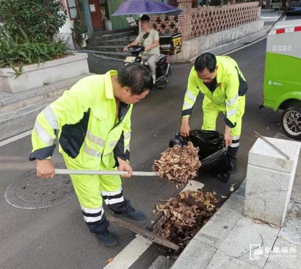 ▲环卫工人及时清理枯枝落叶。 市城管委/供图