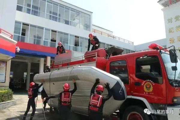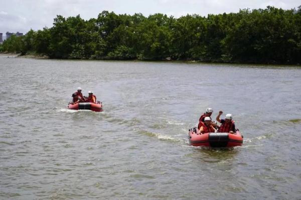 ▲高新区组织天台山救援队于大樟溪支流进行防台风防汛演练。
