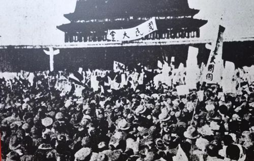 党史馆浮雕墙还原了当时张永祥代表京郊农民发表演说的场景
