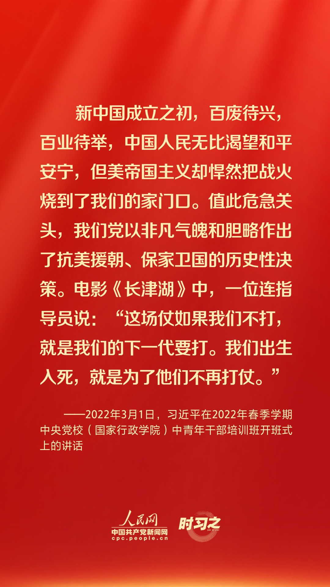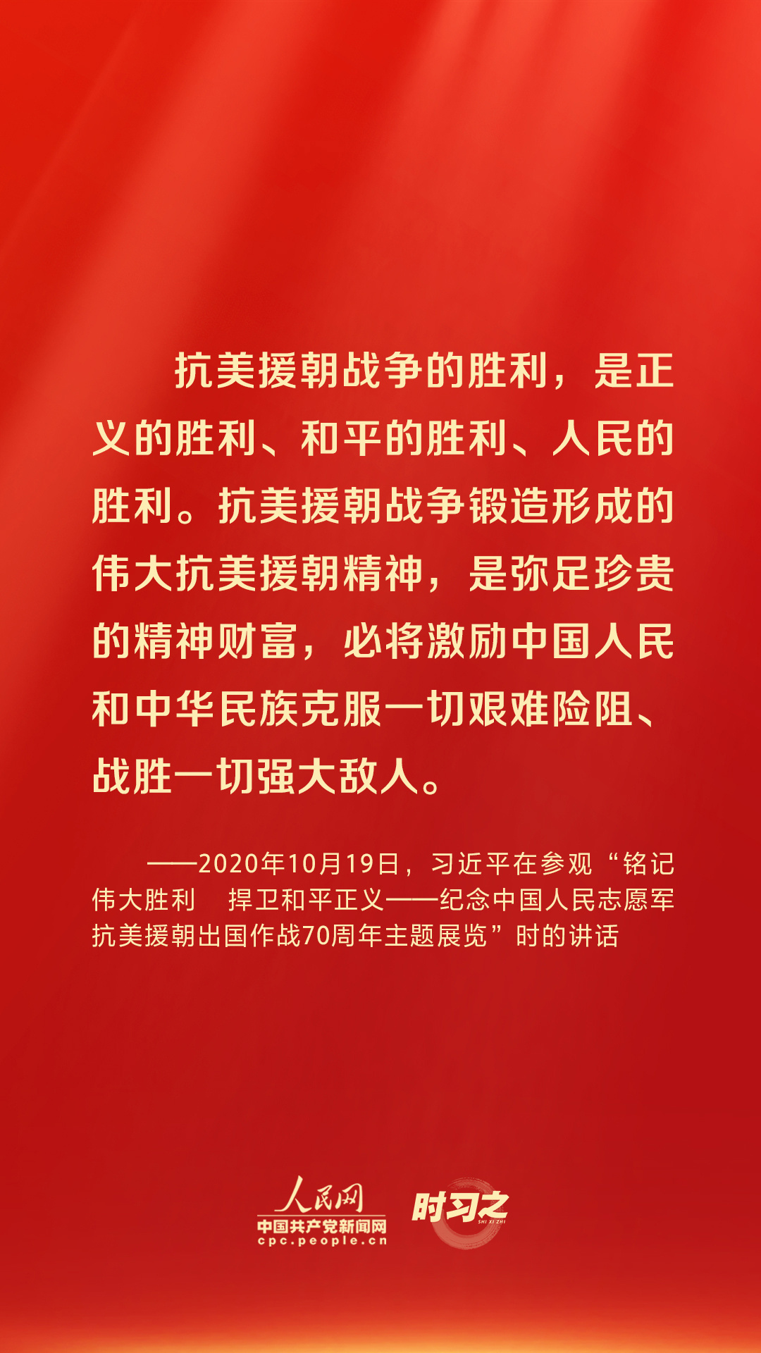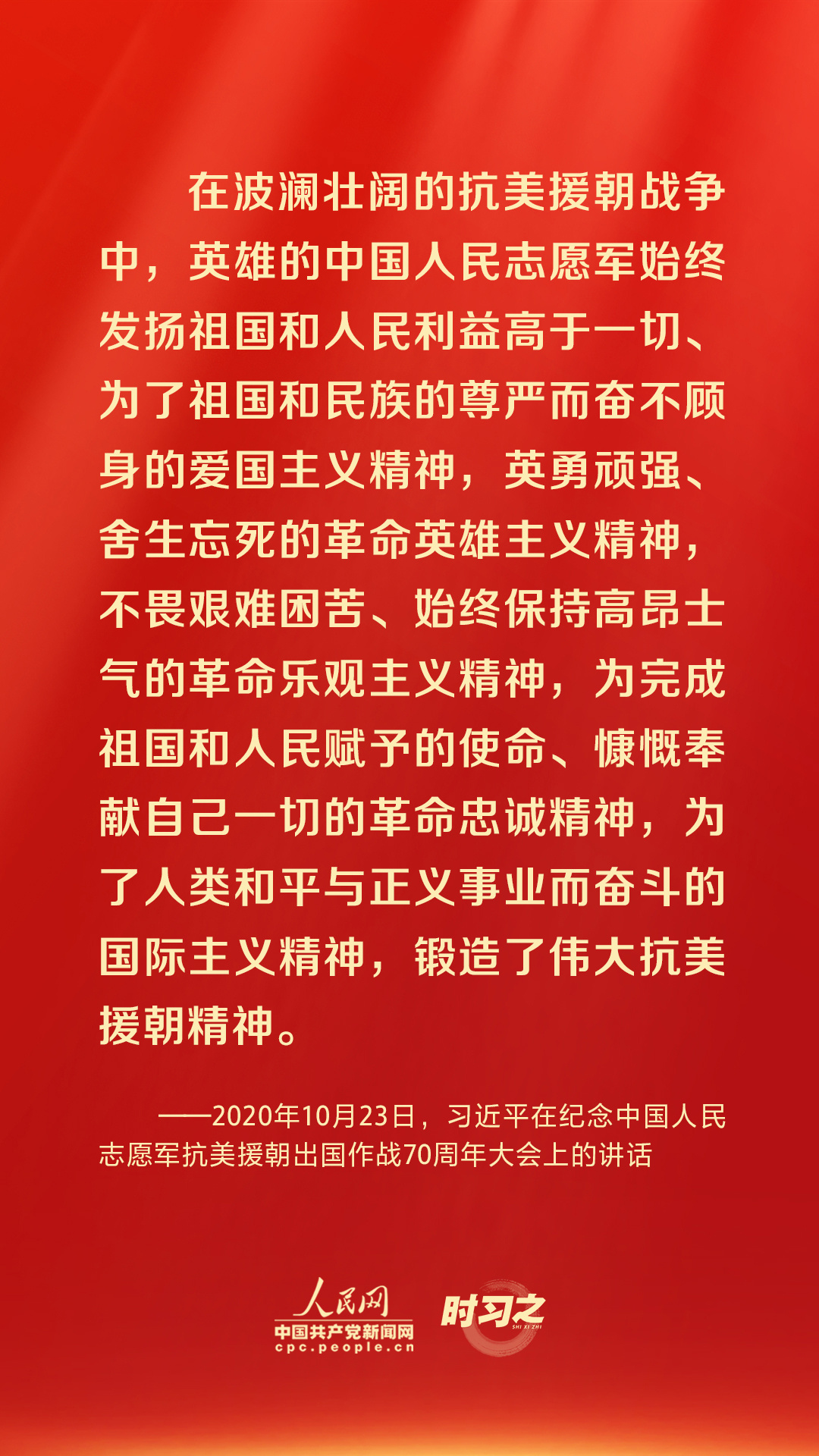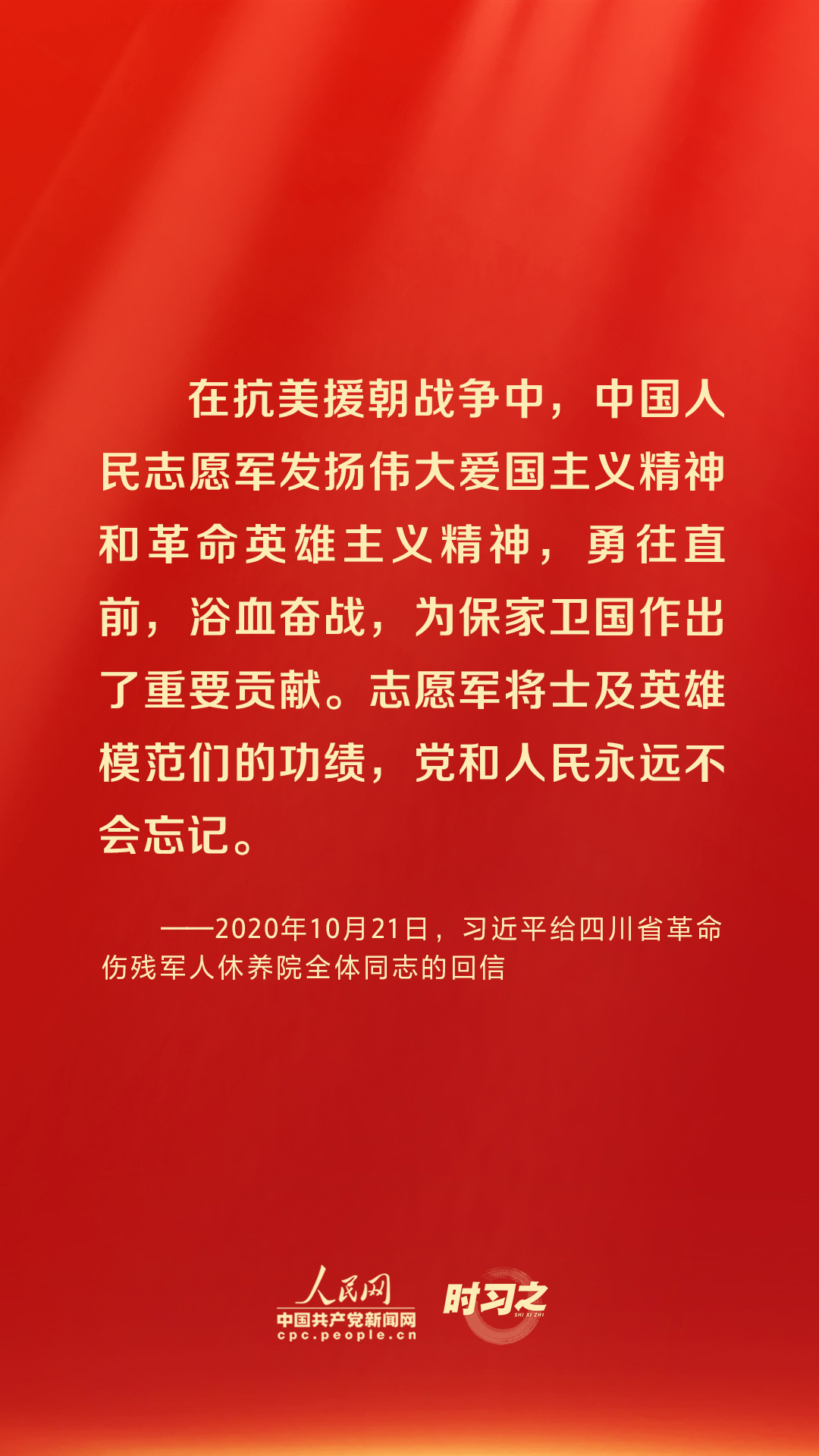 “伟大抗美援朝精神跨越时空、历久弥新,必须永续传承、世代发扬。”习近平总书记多次强调弘扬伟大抗美援朝精神的重要性,激励我们在接续奋斗中创造中华民族更加灿烂的明天。