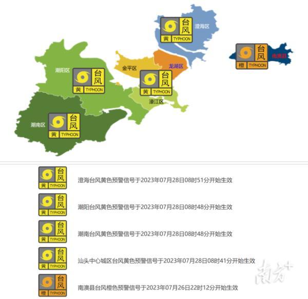 据@汕头天气8时44分消息,目前台风“杜苏芮”对汕头影响逐渐减弱,汕头市气象台7月28日8时41分将台风橙色预警信号降级为台风黄色预警信号。预计今天下午到夜间汕头有大雨降水,附近海面风力6~7级阵风89级。目前全市台风橙色预警信号生效中,请继续做好各项防御工作。