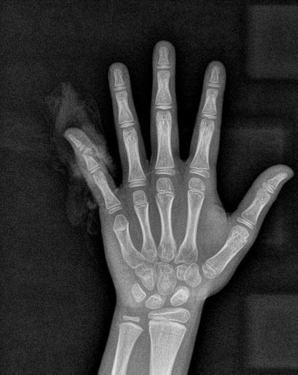 △X线检查结果显示手指离断伤