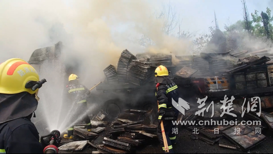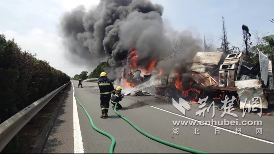 高速半挂货车起火,荆门消防紧急救援。通讯员供图