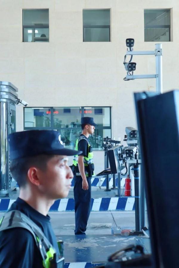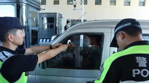 此时,气温已达38℃,刚下车没多久记者就感受到了明显的燥热。在各通道口,执勤民警辅警正对过往车辆及司乘人员信息进行仔细查验,举手示意停车、检查身份信息……丝毫不受高温酷暑的影响。
