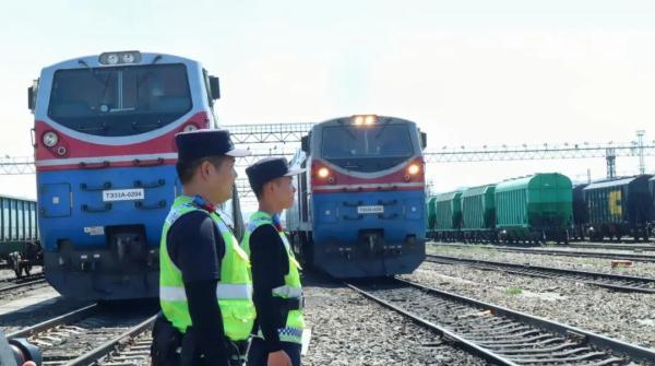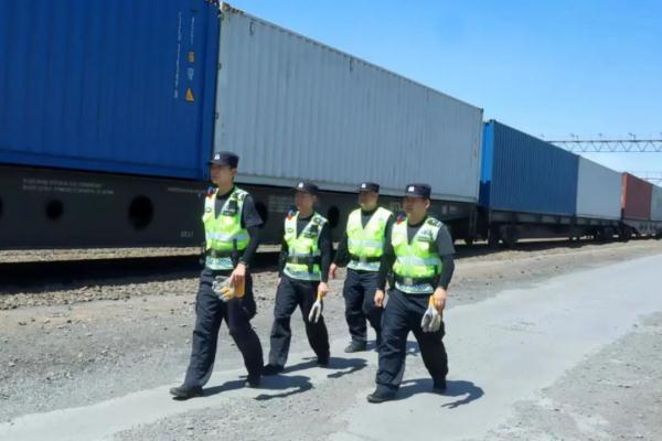 探访完进入阿拉山口市的第一道关口,记者一行驱车20多分钟来到被称为“风口国门”的阿拉山口出入境边防检查站,近距离感受高温下护航中欧班列的执勤现场。