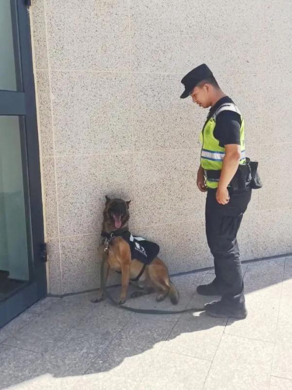杨智超是该边境检查站的带犬执勤民警,主要职责是对重点车辆进行复查,他已经在这里工作了近四年,皮肤被晒得黝黑。结束一班工作,他带着警犬冠明来到旁边的一角阴凉处纳凉,冠明坐在地上伸着大舌头呼呼喘气。“今天气温还可以,像前两天42℃的天气,警犬都会被地面烫到跳脚。”杨智超说。