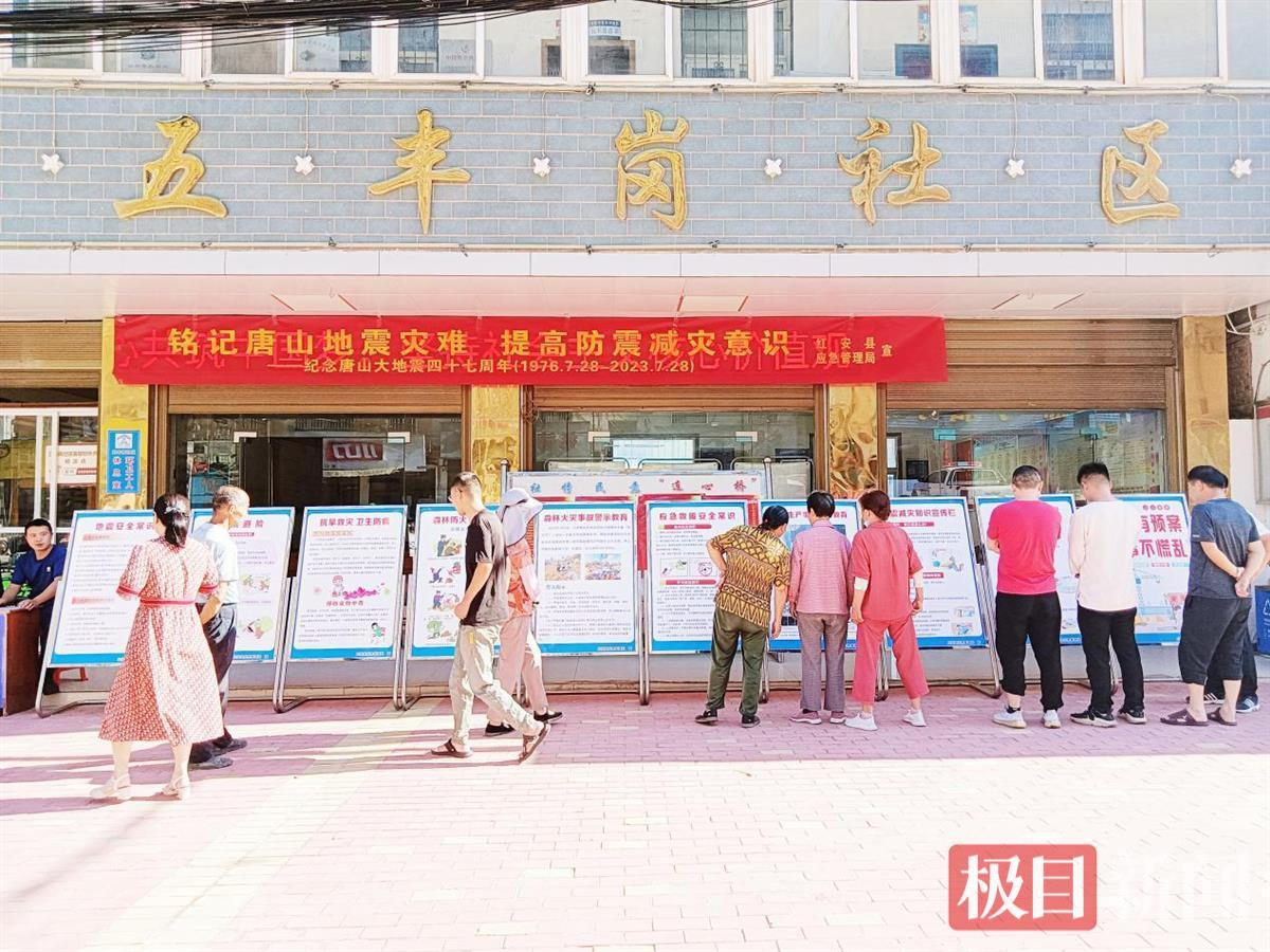 7月28日是唐山大地震47周年纪念日,湖北省红安县应急管理局深入五丰岗社区开展防震减灾宣传活动。