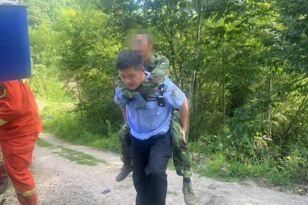 民警王泽平想到添加黄先生微信,通过位置共享、大声呼喊等方式,进一步寻找确切位置,最终在半山腰处找到了受伤的黄先生。民警一边安抚他,一边对接消防到场。为了防止在救援过程中黄先生受到二次伤害,大家在救援过程中更是非常小心。