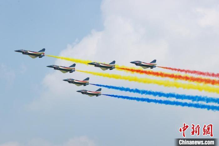 7月26日,2023年空军航空开放活动·长春航空展在吉林长春开幕。空军八一飞行表演队换装歼-10C后首次在国内公开亮相表演。 中新社记者 贾天勇 摄