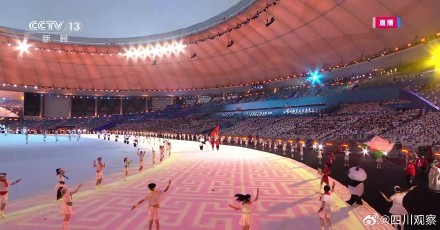7月28日晚8点,成都大运会开幕,象征着太阳神鸟的12道金芒渐次点亮,运动员们踏着蜀锦织就的锦绣之路入场。网友:大运会这条蜀锦路太浪漫!