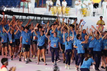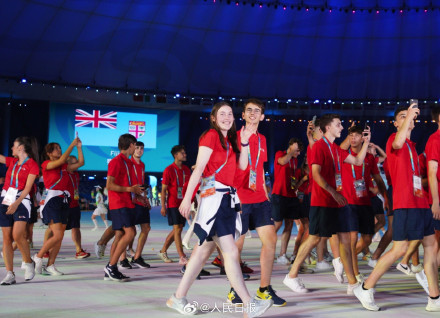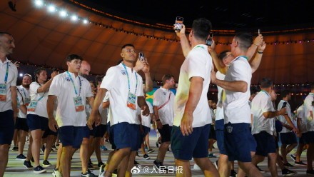 网友:欢迎你们!全世界的大学生运动健儿们!(摄影:人民日报记者 余秋雨伊霄)