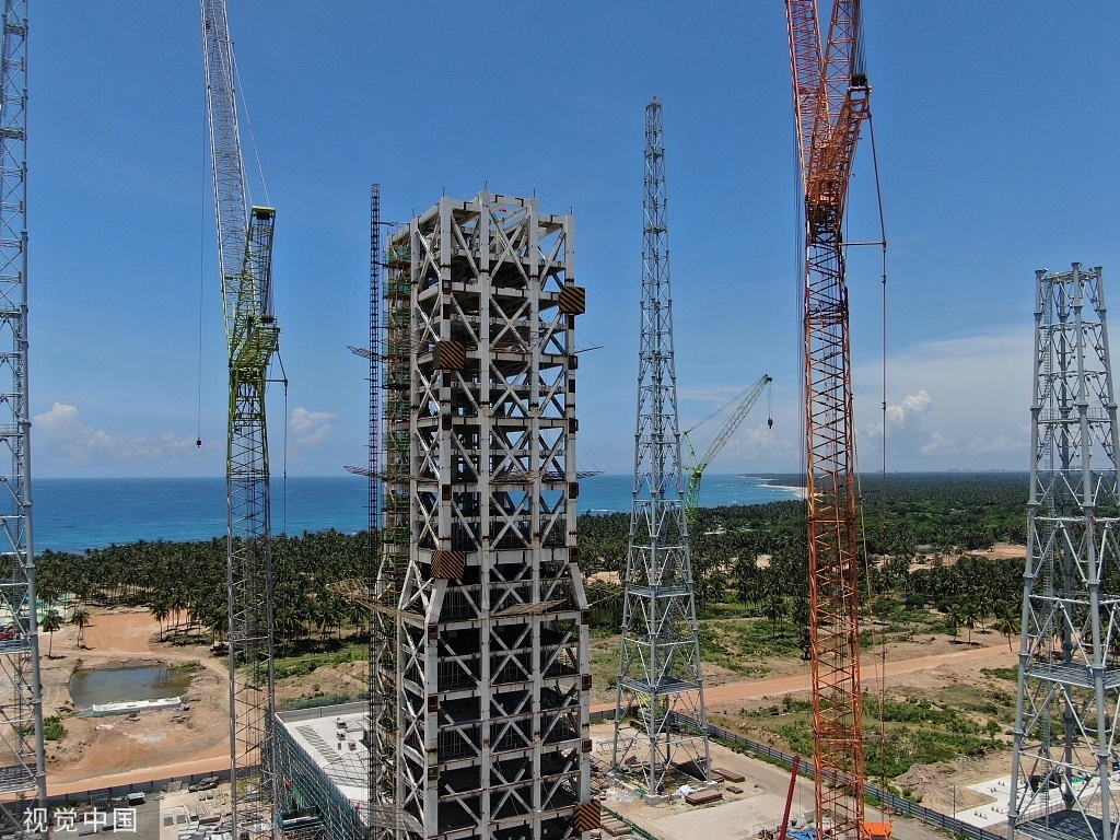 临近文昌的东海岸,航天发射场的建设场景已经远远可见。进入发射场后,记者观察到,发射场项目1号工位已封顶,2号工位基坑已经完成,火箭装配厂房将于今年年底竣工、卫星总装测试厂房将于今年年内投入使用。