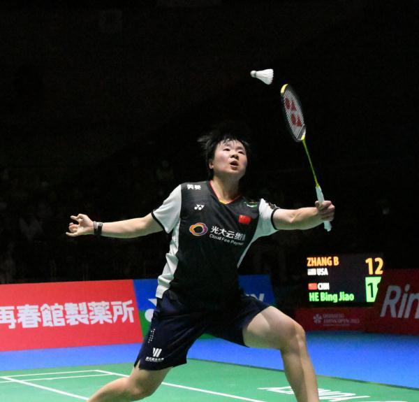 女单赛场上,韩悦总比分0:2不敌中国台北名将戴资颖,无缘四强。何冰娇以21:13、21:18完胜美国选手张蓓雯,成为唯一晋级半决赛的国羽单打选手。赛后她表示,对手此前的淘汰赛体力消耗极大,导致本场状态不佳,自己轻松获胜有幸运成分。