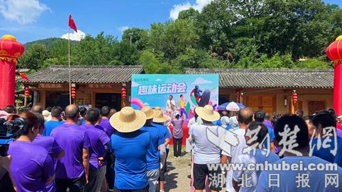 荆楚网(湖北日报网)讯(记者 安从斌 通讯员 周勇、赵子明)7月27日下午,钟祥市客店镇首届农民趣味运动会在清平乐露营地举办,14支由客店镇村(社区、林场)、镇直单位组成的队伍参赛。