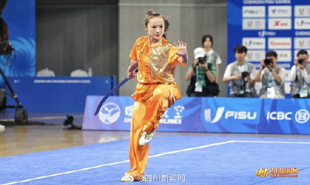 7月29日,成都第31届世界大学生夏季运动会首个比赛日,在武术套路女子南刀的比赛中,中国选手宋翠芳发挥出色,最终以9.666的高分夺得成都大运会第2金。(四川新闻网记者 张宇)