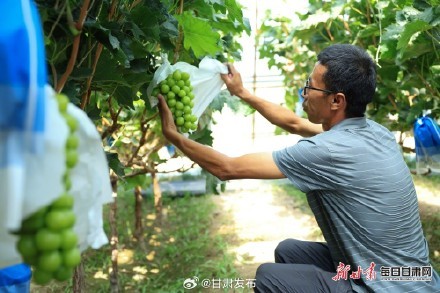 近日,金塔县金塔镇金色田园采摘园内,一串串“阳光玫瑰”葡萄沉甸甸地挂满枝头,水润饱满,宛如晶莹剔透的“绿宝石”。种植户正忙着挑选、采摘、包装、装盒,开启了甜蜜丰收季。近年来,金塔县以“品种特色化、生产数字化、质量精品化、发展品牌化”为目标,着力打造“金塔葡萄”绿色高质量发展之路。(新甘肃·每日甘肃网通讯员曹红祖 摄影报道)
