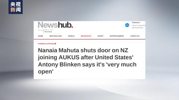 对此,新西兰“新闻中心”网站等媒体在报道时说,“在布林肯说澳英美联盟的大门向新西兰打开后,马胡塔把这扇门关上了”。“新闻中心”记者还在报道中写道:“澳英美联盟不仅与我国的无核法律相冲突,还与我国的太平洋无核化政策相冲突。这是一个我们必须出卖灵魂才能加入的俱乐部。”