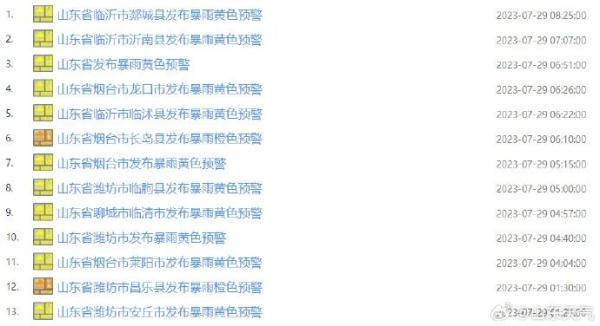 长岛、昌乐暴雨橙色预警信号生效中