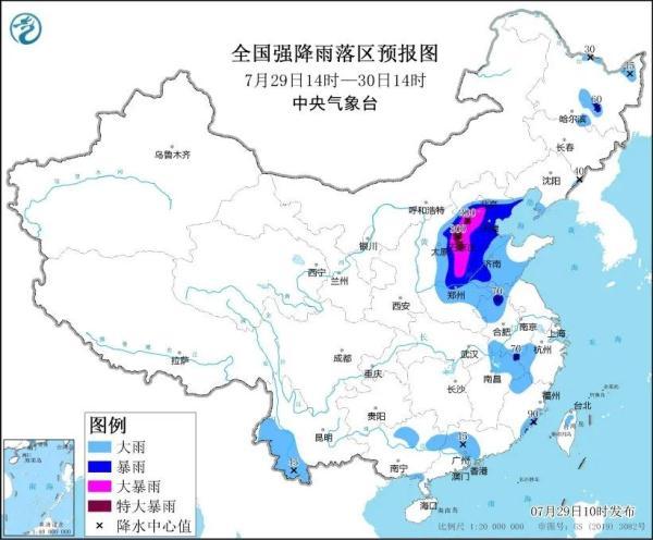 中央气象台7月29日10时继续发布暴雨橙色预警