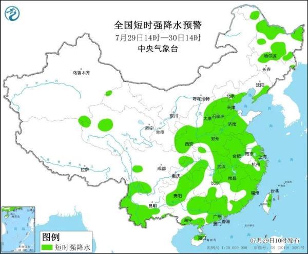 中央气象台7月29日10时升级发布强对流天气黄色预警