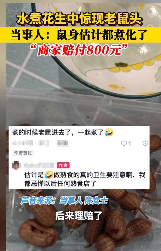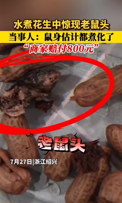 据报道,当事人介绍称,水煮花生是自己老公买的,老鼠看上去很小,估计身体煮化了。