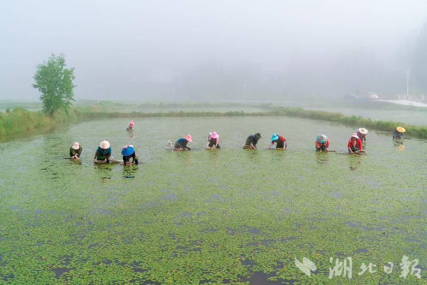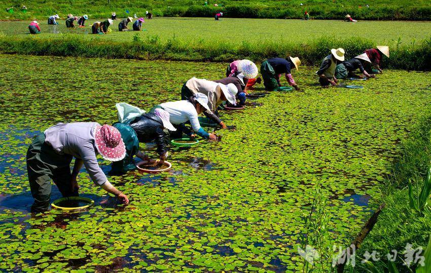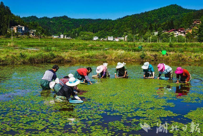 利川市凉雾乡继昌村今年莼菜又喜获丰收。继昌村海拔1100米至1300米,水资源丰富质优,绿色的生态适宜莼菜生长。近年来,该村以党建促振兴,聚焦发展莼菜产业,通过“党支部+企业+基地+农户”的方式,改良发展莼菜近1700亩,实现了党建和农业产业融合新发展。继昌莼菜基地也是目前利川规模最大,品质最优的莼菜产业核心示范基地。该基地实行“企业+基地+农户”的生产、加工、销售一条龙模式,现利川最大的莼菜加工企业“利川睡芙生态农业开发有限公司”落户该村,据了解,改良后的莼菜品种,亩产可由原来的1万元左右提升到1.3万元左右。继昌村莼菜基地是武汉经济开发区对口帮扶项目,项目资金规模200万元,该项目的实施起到了显著的示范带动效应,增加了百姓和村集体经济收入,壮大了利川莼菜产业,为促进巩固脱贫攻坚成果与乡村振兴发挥了巨大作用。如果想去观光,就随小编看过来。