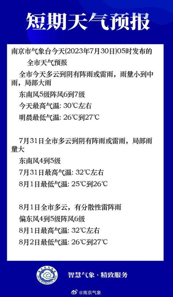 7月30日6时8分发布最新天气: