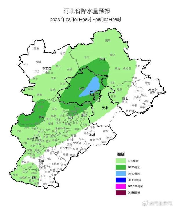 明天白天到夜间,全省阴,张家口中南部、承德西部、保定、雄安新区、廊坊、石家庄、沧州、衡水西部、邢台中西部、邯郸中西部有大雨到暴雨,其中张家口南部、保定、石家庄北部的部分地区有大暴雨,个别地点有特大暴雨,其他地区有小到中雨。