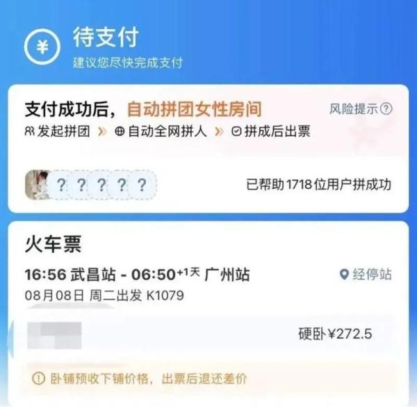 “火车卧铺女性拼团服务”引发关注