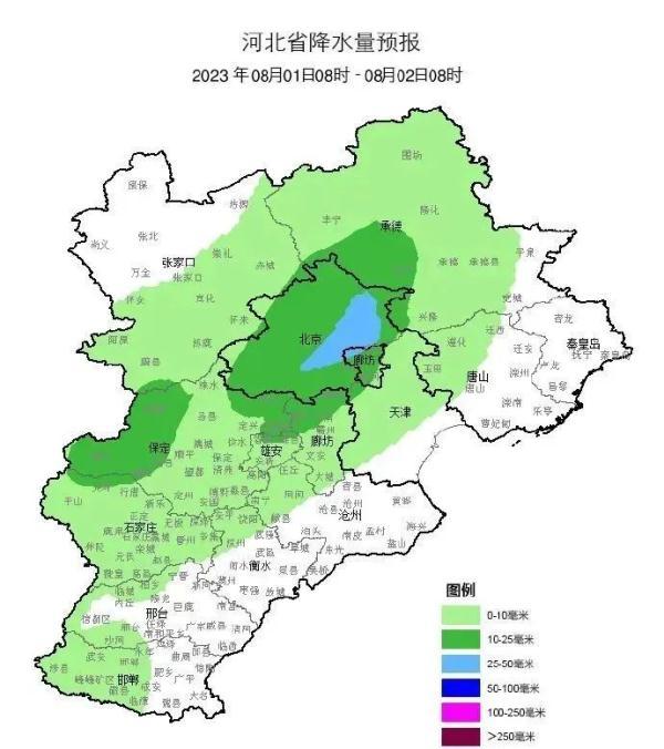8月1日白天到夜间,河北省的中西部地区有雷阵雨或阵雨 ,局地有中到大雨。