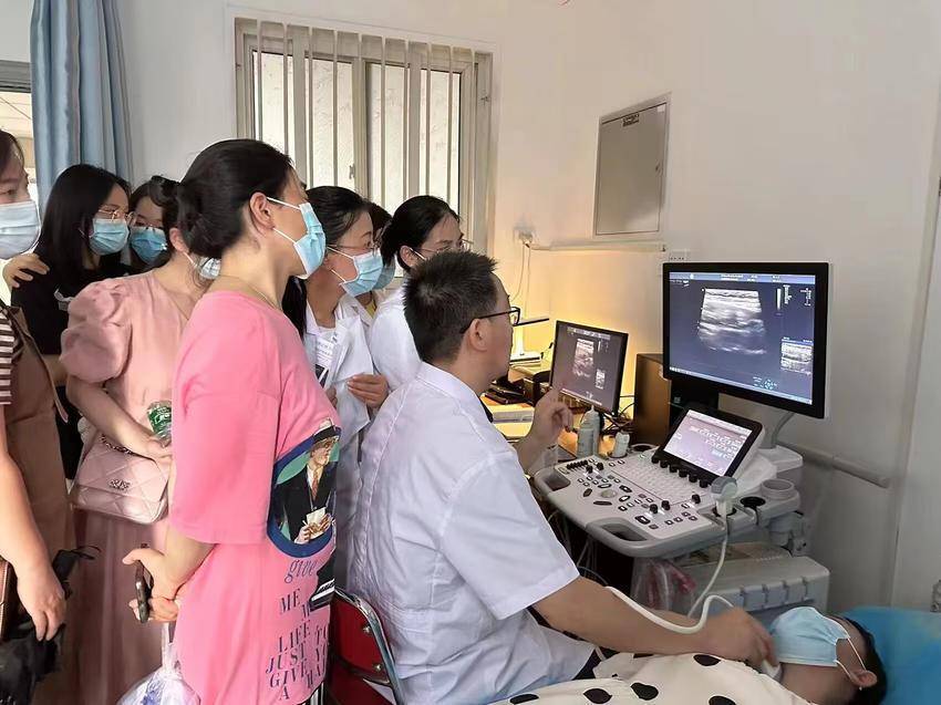 在城关镇卫生院超声影像科,陶溢潮主任进行了现场操作、指导和讲解,专家团队和各基层医院超声科医生共同参与学习并沟通交流。上级专家还为学员们进行了甲状腺、乳腺结节超声影像检查报告规范、质控及分级的专业讲座。课堂上,学员们踊跃发言提问,专家们耐心给予解答,台上台下互动频繁,气氛活跃。