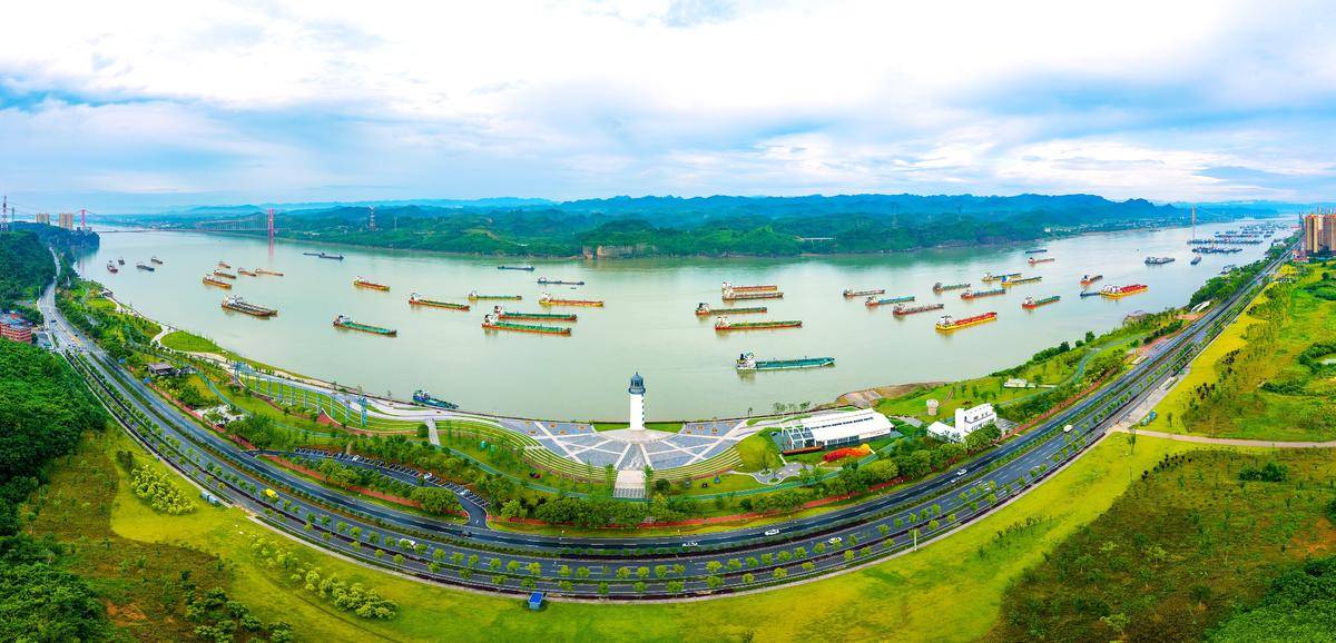 宜昌市猇亭区长江灯塔广场,水清岸绿,百舸争流,美不胜收。近年来,宜昌市通过破解化工围江、非法码头治理、岸线复绿等综合措施,长江水更清,岸线更美,整治后的长江岸线已成为宜昌市创建长江大保护典范城市的标杆。(视界网 王耿 摄)